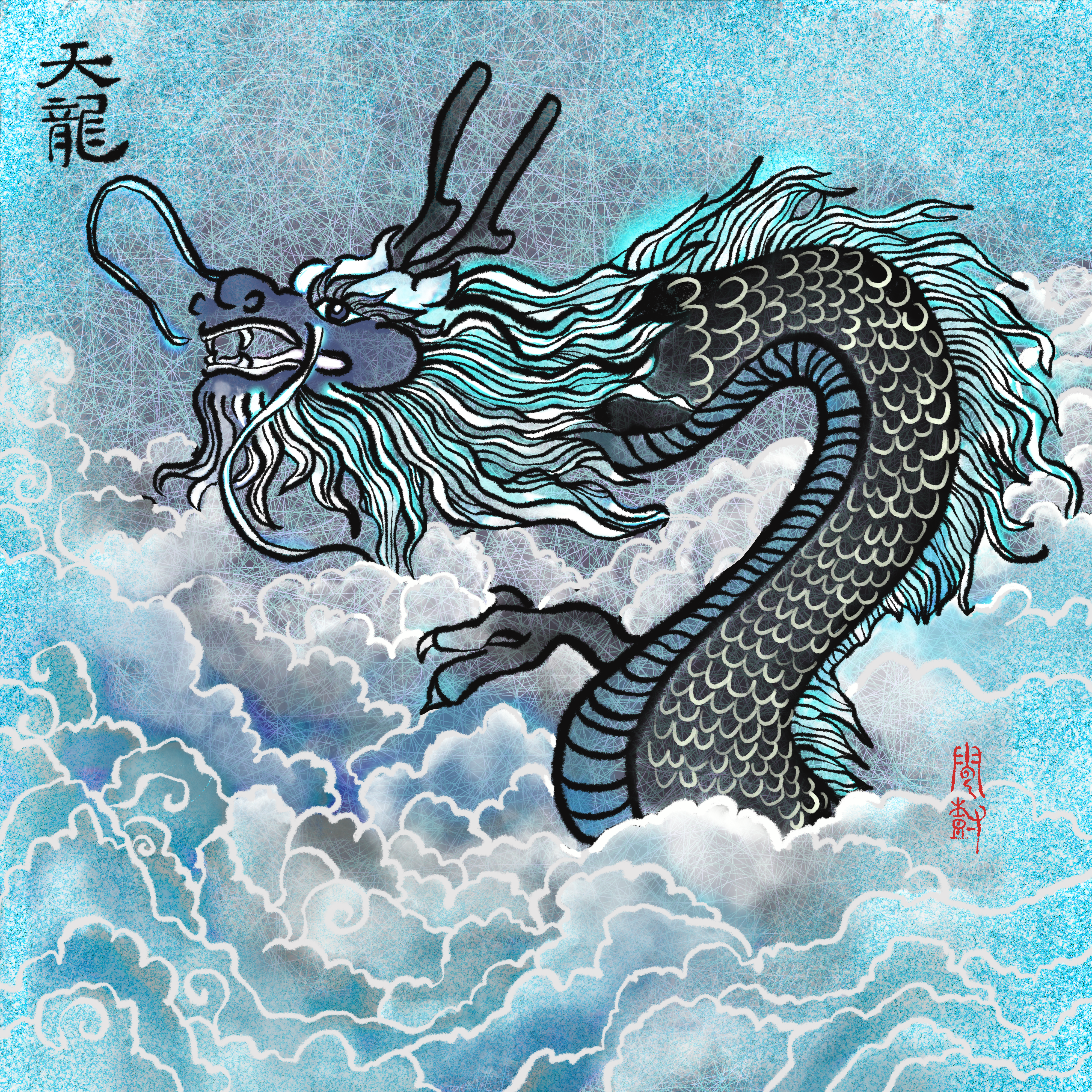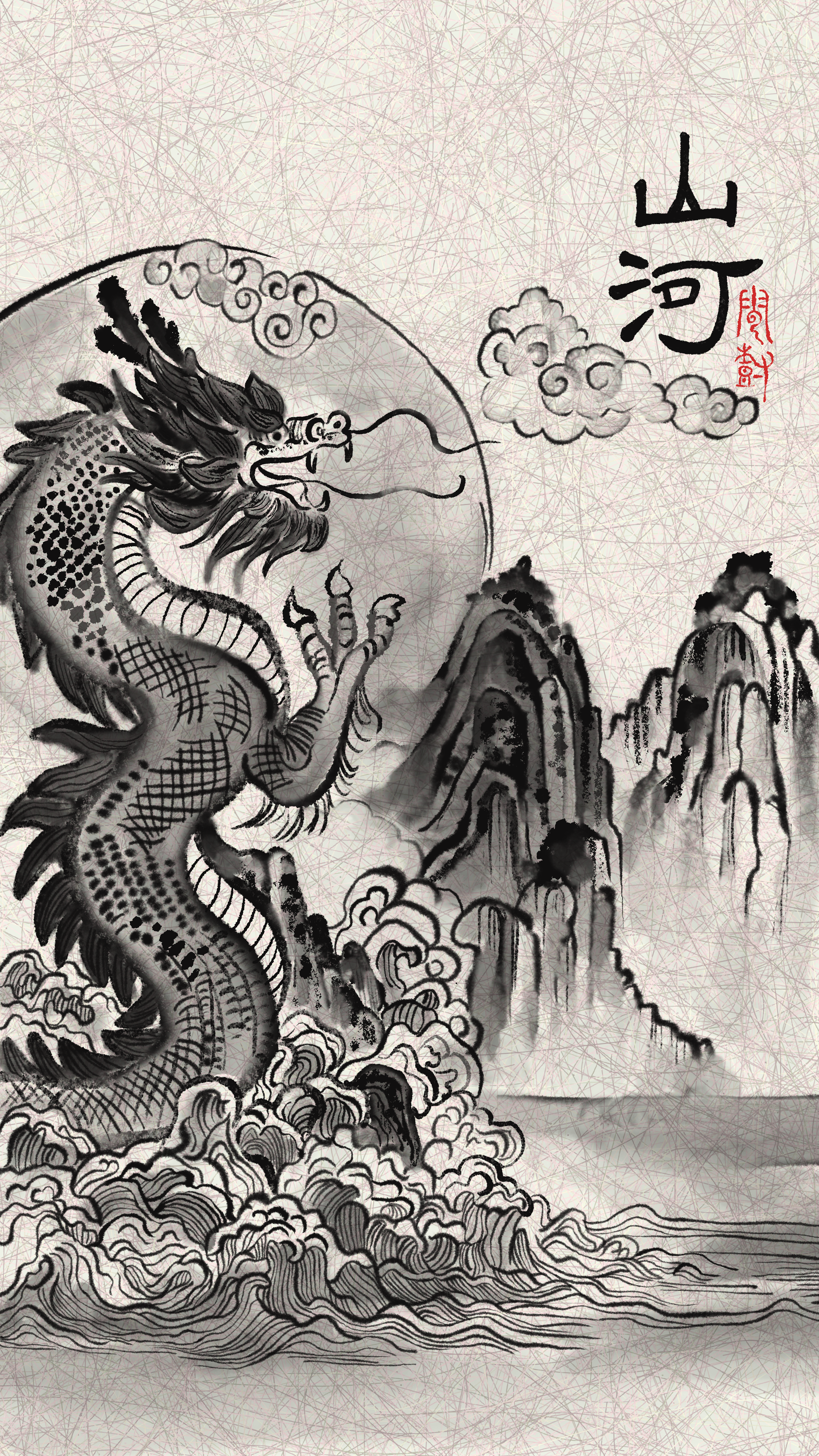 Each dragon is carefully hand drawn on Procreate, resembling Chinese ink brushes.