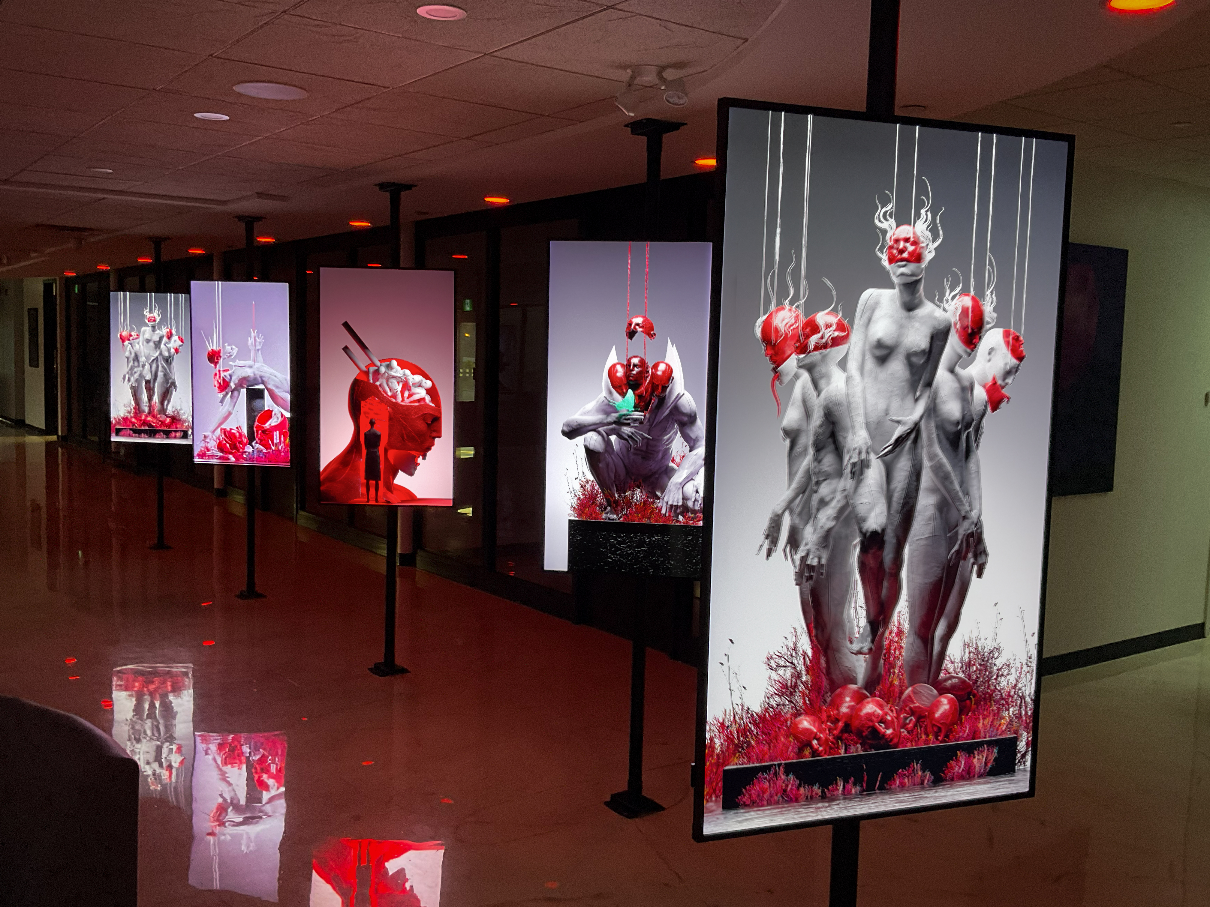 The choice of a monochromatic red palette intensifies the emotional impact, making the figures appear almost sculptural in their solidity while emphasizing themes of passion, conflict, and connection. KX’s skill in blending traditional sculptural techniques with digital artistry is evident in the fluidity of the figures and the precise yet expressive use of space and composition. "Sequence" invites viewers to contemplate the complexities of human interaction, movement, and the inherent duality of connection and conflict.
